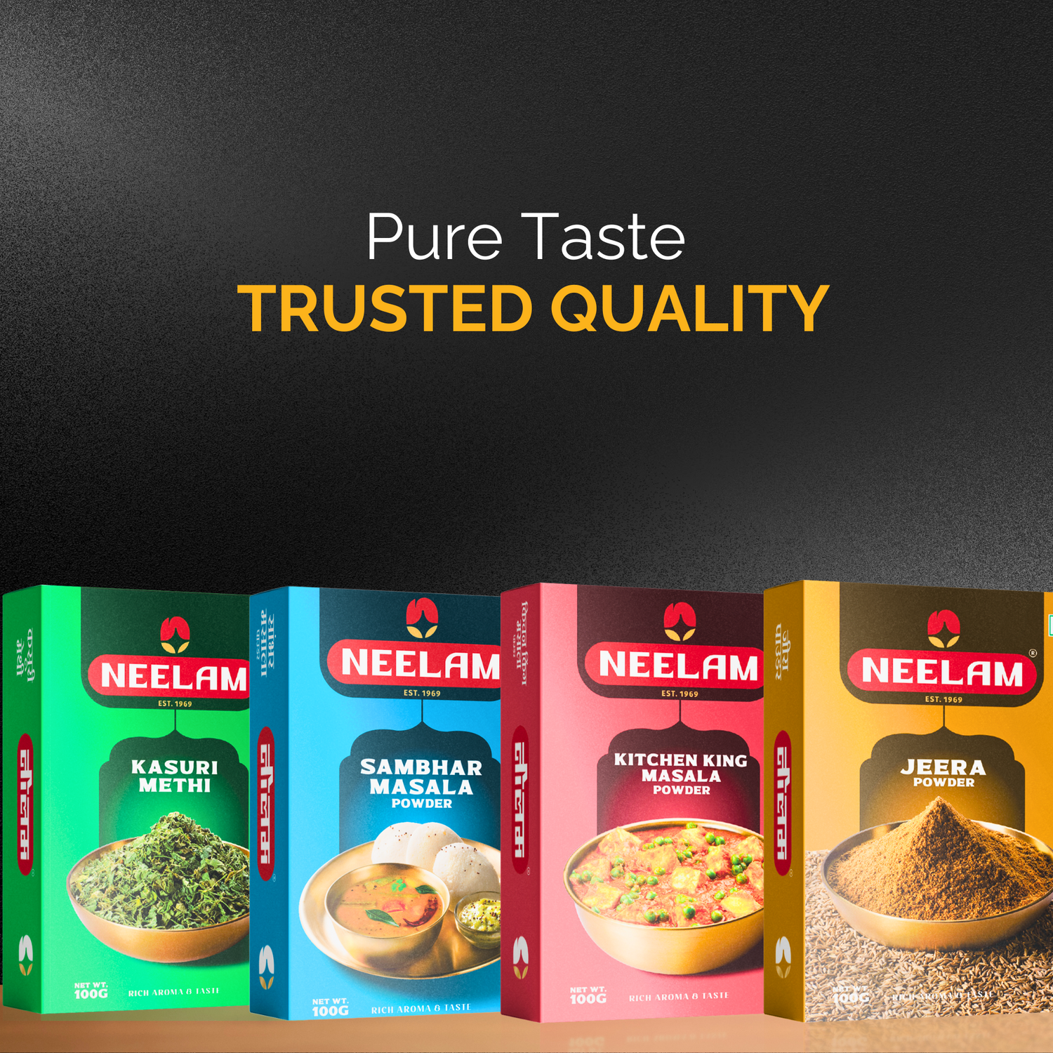 At Neelam Spices, transparency and authenticity are at the heart of everything we do. With decades of experience in sourcing, cultivating, and providing the finest spices, we are committed to delivering only the best to our customers. Every stage of our process, from selecting the highest quality raw ingredients to ensuring the most precise packaging, is carried out with meticulous care. Our cutting-edge techniques and unwavering dedication guarantee that each product we offer stands as a testament to quality and excellence no compromises, only the best.